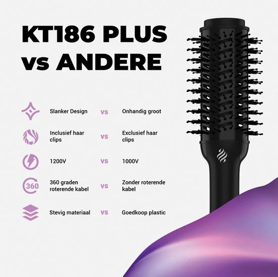 Met de Ace & Taylor KT186 Plus föhnborstel krijgt u meer volume en is uw haar binnen no-time in model. Met deze multifunctionele föhnborstel houdt u uw haar gezond.