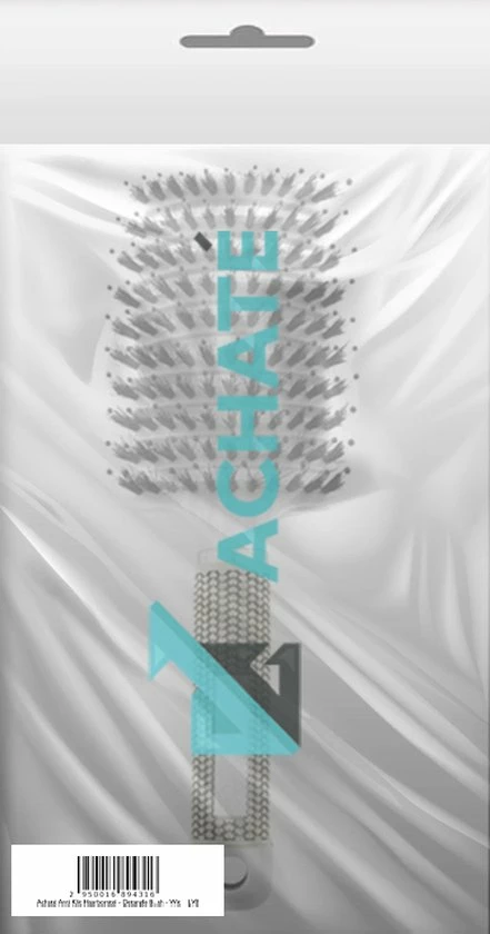 De Achaté Brush haarborstel is onmisbaar! Niet gek dat veel kappers zaken deze borstel in gebruik hebben! Het is een unieke borstel die helpt de hoofdhuid te beschermen en om het haar te ontwarren en glanzend te maken. De borstel is gemaakt van zacht materiaal en siliconen pinnen die de hoofdhuid helpen beschermen. Door zijn ergonomisch design is ligt de borstel heerlijk in de hand. De Brush sluit comfortabel aan op het hoofd, ontwart zeer eenvoudig en glijdt moeiteloos door het haar.