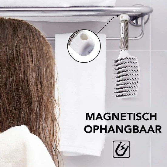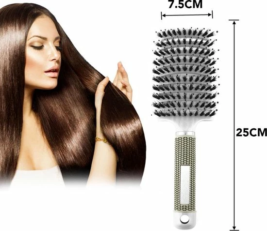 Snel ontwarren – De haren en nylon helpen dik haar te ontwarren en de hoofdhuid te masseren terwijl olie van de wortel naar de punt van je haar wordt verspreid.
