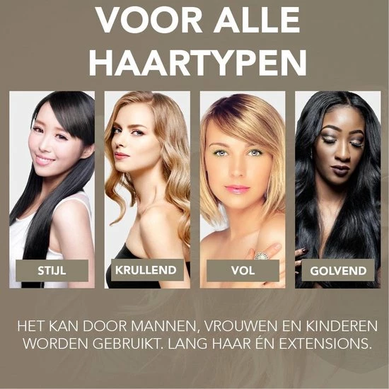 Voor alle haartypen – Het kan door mannen en vrouwen en kinderen worden gebruikt. Lang haar én haarwerken of extensions.