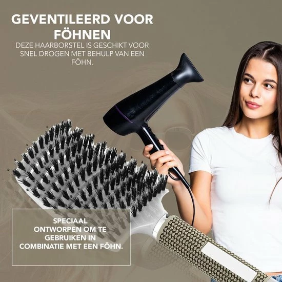 Geventileerd voor föhnen – Deze haarborstel is geschikt voor snel drogen met behulp van een föhn.