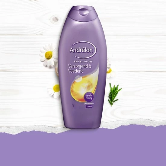Andrélon Bad en Douche Verzorgend & Voedend is een verzorgende schuim voor bad en douche voor het hele gezin, dat geschikt is voor dagelijks gebruik. De rijke formule met kamille en honing geeft je een weldadig gevoel, terwijl de verzorgende ingrediënten je huid zacht en soepel houden. Een heerlijk badschuim voor de hele familie! Andrélon is het meest verkochte haarverzorgingsmerk in Nederland. Met een uitgebreid assortiment shampoos, conditioners en stylingproducten biedt Andrélon je een uitgebreide verzorging voor elk type haar. Andrélon kent een rijke geschiedenis van bijna 75 jaar. Eind jaren 30 begon André de Jong te experimenteren met zijn eigen shampoo die hij in zijn eigen fabriekje maakte. In het begin verkocht hij zijn producten alleen aan collega’s, al snel trokken zijn zoons de regio door met tassen vol vaste en vloeibare verzorgingsmiddelen. In 1940 registreerde hij zich bij de Kamer van Koophandel en Fabrieken in Bodegraven. Parfumerie Andrélon was geboren en in de daarop volgende 75 jaar ontwikkelde het zich als een landelijk bekend merk voor haarverzorging. Vernieuwing is voor Andrélon altijd erg belangrijk geweest. Van de introductie van de onderscheidende schubbenfles tot de steeds vernieuwende formules van de shampoos, conditioners en stylingproducten. Andrélon Verzorgend en Voedend is dan ook weer een nieuwe stap voor Andrélon. Het oude vertrouwde haarproduct gecombineerd met een badschuim.