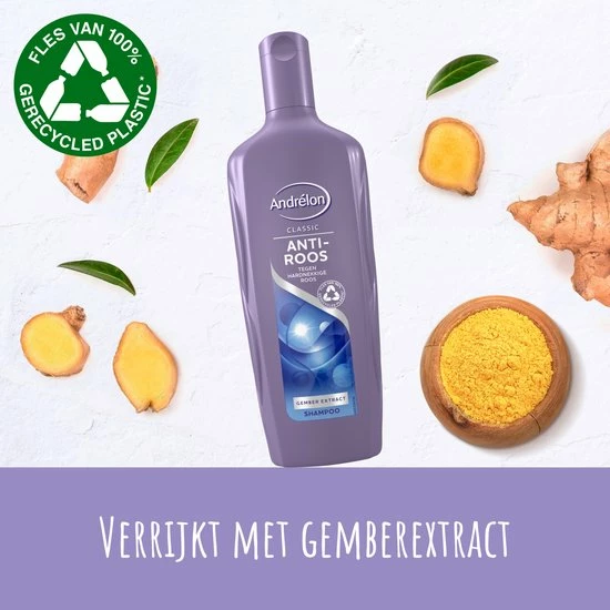 De hoofdhuid heeft extra verzorging nodig wanneer deze last heeft van roos. Dit werkt zo voor vrouwen, maar ook voor mannen. De Andrélon Classic Anti-Roos Shampoo met gemberextract zorgt voor een uiterst effectieve bestrijding van roos. Tegelijkertijd blijft je haar zacht en vitaal en behoudt het zijn natuurlijke glans. Andrélon Classic Anti-Roos Shampoo is speciaal ontwikkeld om je haar en hoofdhuid langdurig roosvrij te houden. Regelmatig gebruik voorkomt de terugkeer van roos.