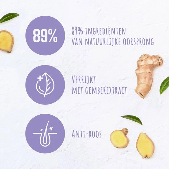 - Verrijkt met gemberextract voor verzorging van je hoofdhuid en haar