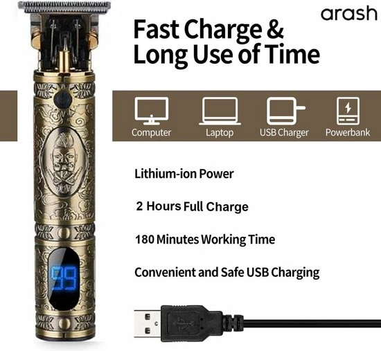 De hoogwaardige lithium-ionbatterij levert tot 120 minuten gebruikstijd na 1 uur opladen. Met een snelle oplaadbeurt van 5 minuten kun je één keer volledige trimmen.