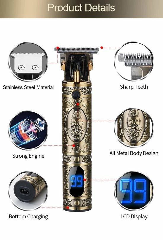 Gebruik de metalen trimmer zonder kam om heldere, scherpe lijnen te maken rond uw baard, nek en haarlijn of trim uw lichaamshaar tot een minimumlengte