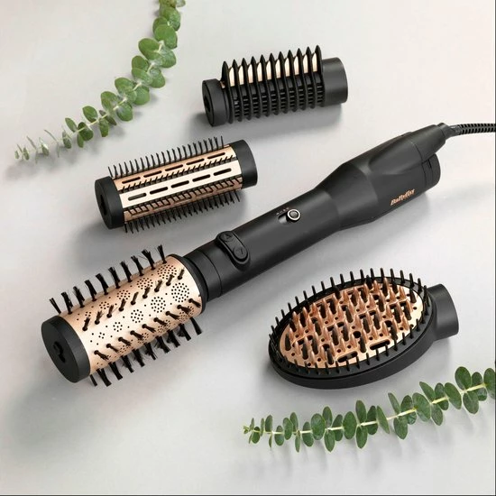 Deze roterende föhnborstel set bestaat uit vier handige opzetstukken: