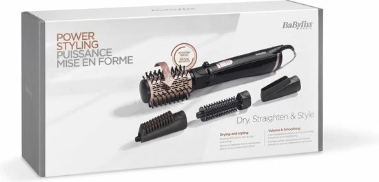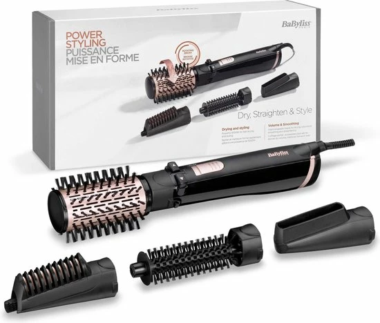 De Dry, Straighten & Style AS200E föhnborstel van BaByliss is een multifunctionele tool voor het creëren van diverse looks! Met de ionische roterende borstel creëer je gemakkelijk thuis een glad en glanzend kapsel. Net zoals bij de kapper of luxe blow-dry bar.