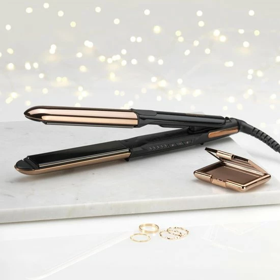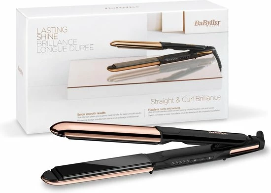 De Straight & Curl Brilliance Stijltang ST482E van BaByliss is de sterkste stijltang én 2 in 1 binnen de gehele collectie. Dit komt door het gebruik van twee materialen. Eén door titanium, want dit maakt de platen glad en sterker, waardoor ze beter bestand zijn tegen haarstylingsproducten én door de behuizing van RVS. Dit zorgt ervoor dat de platen, door de warmte, op den duur niet verbuigen. De platen blijven dus altijd mooi op elkaar aangesloten. Zo krijg je je haar in één keer mooi steil of gekruld. Krullen kan namelijk ook doordat de buitenkant van de stijltang ook wordt verwarmd. Pak de cooltips aan het uiteinde van de stijltang vast, zodat je het haar kan krullen.
