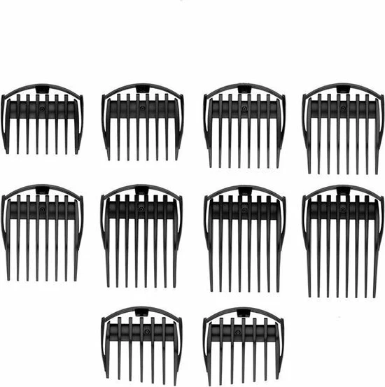 - 8 opzetkammen met lengtes tussen 3 – 25mm met 0,6 mm precisie zodat je exact het gewenste resultaat bereikt