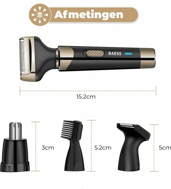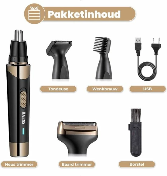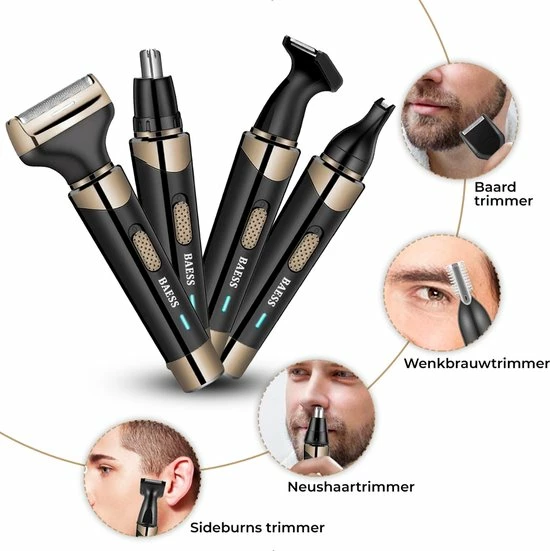 Wil je er elke dag verzorgd en mooi uitzien, zonder er veel tijd aan kwijt te zijn? Deze 4 in 1 neushaartrimmer van BAESS zorgt ervoor dat je op een pijnloze en veilige manier snel jouw ongewenste haren weg kan scheren of bij kan trimmen. Zo kan deze trimmer ongewenst oor, neus haar, wenkbrauw, nek en baard bij trimmen of weg scheren. Verwijder gemakkelijk ongewenst neushaar, oorhaar, wenkbrauwhaar en baardhaar. Met de 4 in 1 trimmer van BAESS kan je op kwetsbare en moeilijke plekken komen, zonder huidirritatie er aan over te houden.