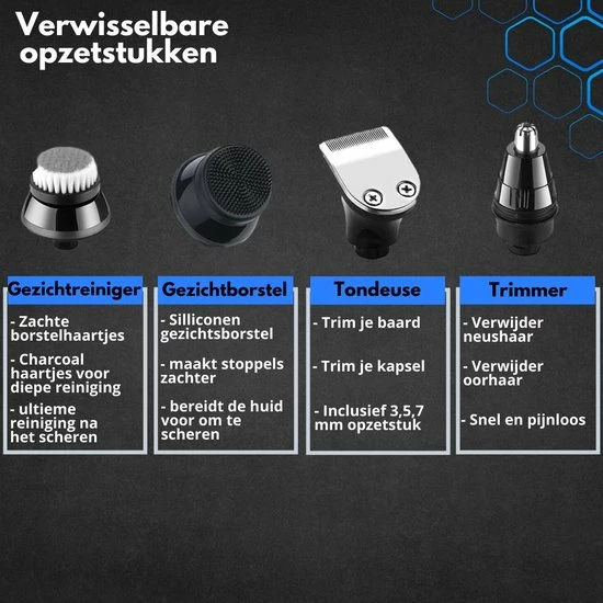 ✓ Inclusief neustrimmer, tondeuse opzetstukken & reinigingsborstels