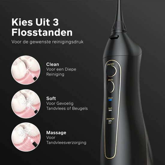 De hogedruk pulserende waterstralen stimuleren de bloedsomloop in het tandvlees en zorgen voor een gezonder en sterker gebit. Bij last van zwak tandvlees, een slechte adem, tandbederf, tandplak en/of parodontitis is de waterflosser onmisbaar. Vanzelfsprekend is de waterflosser zeker voor mensen met een beugel een absolute uitkomst!