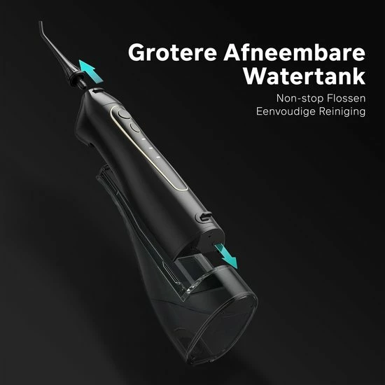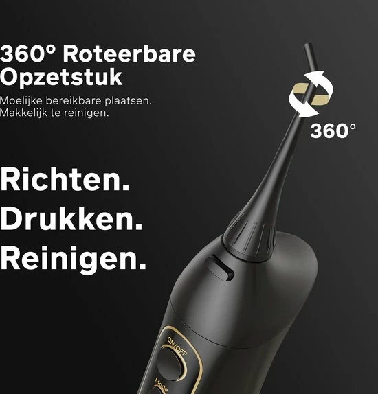 Het gebit schoonhouden achter of tussen de tanden is vaak een uitdaging, zeker als je een beugel hebt. Met deze elektrische waterflosser kun je al die lastige hoekjes en gaatjes goed schoonmaken. Met één beurt haal je 99.99% van alle tandplak weg!