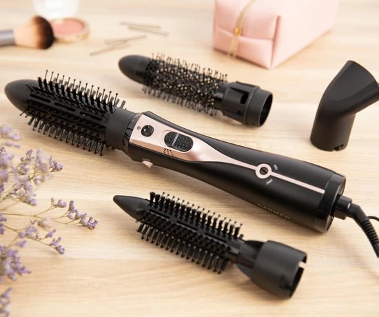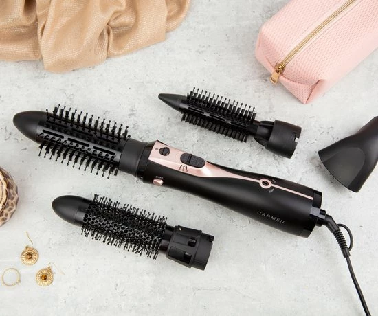 De Carmen DC1055 Complete Multi Styler is een complete stylingset en is daarom ook het geheim voor perfect gestyld haar. Dankzij de vier meegeleverde accessoires bij de föhnborstel is het geschikt voor alle haarlengtes. Ook kun jij in een handomdraai verschillende haarstijlen creëren met deze verschillende borstels. Dankzij de ION technologie in de föhnborstel is statisch haar verleden tijd. Compleet van een grove slag tot aan fijne krullen. Fixeer het haar met de Coolshot-functie. Klaar met het in model brengen van jouw haar? Hang de Multi Styler op aan de opbergclip en je bent klaar om te gaan.