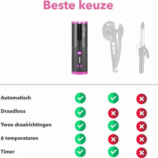 ✔ Inhoud Verpakking: Automatische Krultang, Kam, Etui, 2x haar klipjes, Handleiding