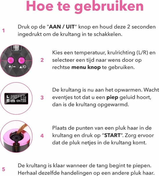 ✔ Inhoud Verpakking: Automatische Krultang, Kam, Etui, 2x haar klipjes, Handleiding