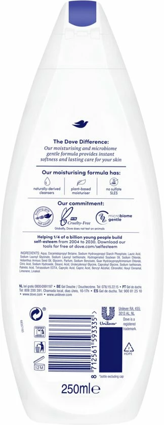 Dove Deeply Nourishing Douchegel reinigt de huid en voedt haar intensief. Deze Douchegel met ¼ hydraterende crème heeft een heerlijke, frisse geur die ook verrassend luxe ruikt. De unieke toevoeging van NutriumMoisture helpt bij de opbouw en het behoud van een mooiere, gladde en zachte huid. Dankzij de unieke werking van NutriumMoisture wordt de huid in alle zachtheid gereinigd en gehydrateerd. De consistentie van de Douchegel is romig, ontspannend en verzorgend, waardoor het aanbrengen op de huid een feestje is!