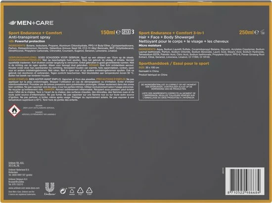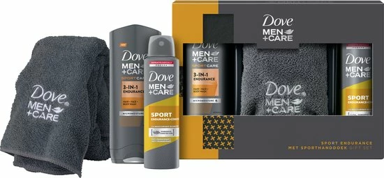 De Dove Men+Care Sport Endurance Geschenkset is het ideale cadeau voor de sportieve man die zich graag goed verzorgt. De geschenkset bevat de Dove Men+Care Sport Care Endurance 3-in-1 Douchegel, de Dove Men+Care Sport Endurance+Comfort Anti-Transpirant Spray en een sporthanddoek.