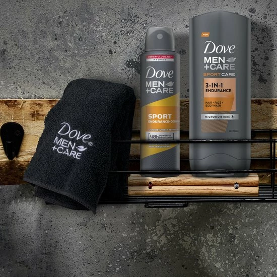 De Dove Men+Care Sport Care Endurance 3-in-1 Douchegel is speciaal ontwikkeld voor de mannenhuid om de huid te versterken en te verzorgen na het sporten. Deze douchegel laat je huid niet alleen verfrist aanvoelen, maar zorgt ook voor hydratatie. Alle Dove Men+Care douchegels bevatten MicroMoisture-technologie wat op de huid wordt geactiveerd en helpt tegen het uitdrogen van de huid na het douchen.