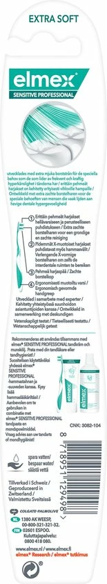 De elmex Sensitive Professional tandenborstel heeft extra zachte borstelharen voor een grondige en zachte reiniging. Aanbevolen om in combinatie met elmex® Sensitive Professional Tandpasta en Tandspoeling te gebruiken.