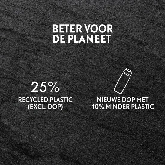 - De verpakking bestaat uit 25% recycled plastic (excl. dop)