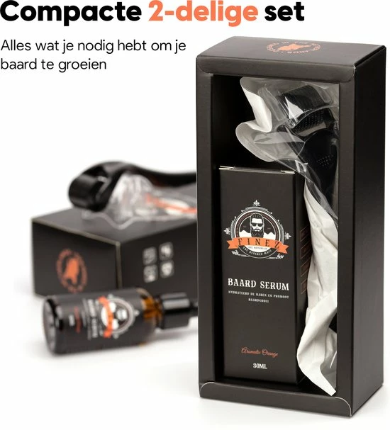 - Een verhoging van de opname van het baardgroeiserum dat ook in de set zit