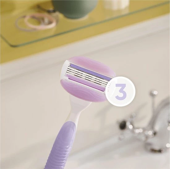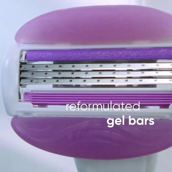 - Naadloos glijden: De gelkussentjes op elk scheermesje worden in water geactiveerd, waardoor ze soepel glijden bij elke beweging