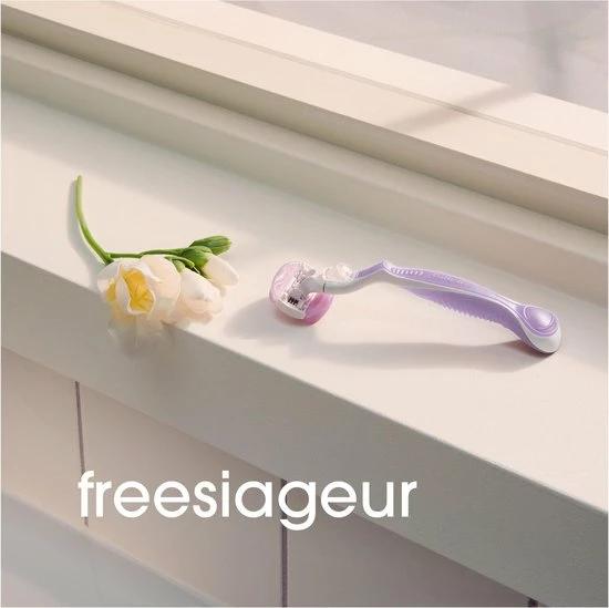 - Huidbescherming: De gelkussentjes op het scheermesje geven een rijke fresiabodybutter af om uw huid tegen wondjes, sneetjes en irritatie te beschermen