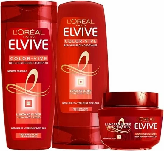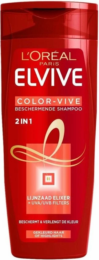 De 2-in-1 Shampoo & Conditioner van L’Oréal Paris Elvive Color Vive bevat een beschermende en verzorgende formule van een shampoo en een conditioner. Verrijkt met Color Protect Lijnzaad Elixer, UVA-/UVB-filters en Voedend Concentraat werkt in op de 3 dimensies van gekleurd haar.