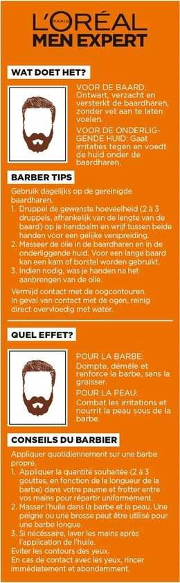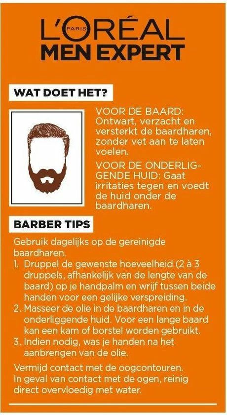 Stap 1: Druppel de gewenste hoeveelheid (2 Ã 3 druppels, afhankelijk van de lengte van de baard) op je handpalm en wrijf tussen beide handen voor een gelijke verspreiding.
