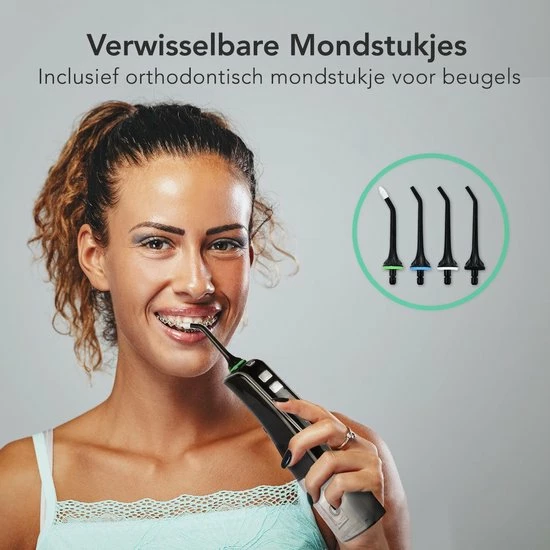 De mondstukjes van de waterflosser zijn net zoals bij een elektrische tandenborstel te verwisselen. Zo kun je de waterflosser samen op een hygiënische manier delen. Heb je een beugel? Maak dan gebruik van het speciale orthodontische mondstukje. De mondstukken zijn 360 graden draaibaar zodat je gegarandeerd overal bij kan!