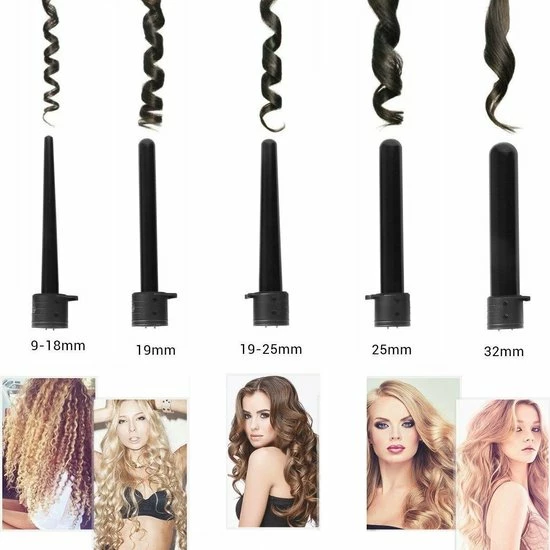 - 5 kwalitatieve opzetstukken om allerlei soorten krullen te maken