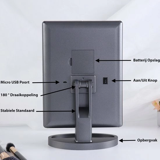 Hoogwaardige 22 LED-lampen bieden uitstekende verlichting die het probleem van slecht licht in uw huis voor eens en voor altijd zal oplossen. De spiegel is perfect voor make-up, schoonheidsbehandelingen, maar kan ook gebruikt worden als extra lichtbron bij het maken van een selfie!