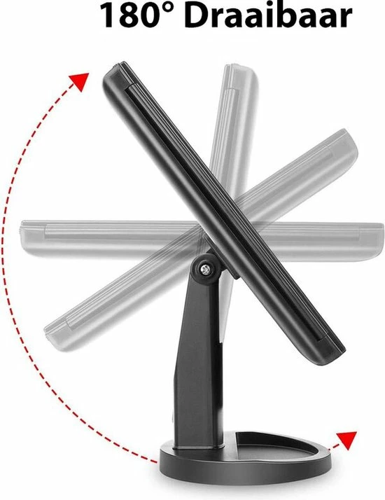 Een stabiele en solide basis maakt verschillende en talrijke manipulaties van de spiegel mogelijk zonder bang te hoeven zijn om te kantelen. Bovendien kan de spiegel 180° verticaal worden versteld! De standaard kan worden gebruikt als een handige plank voor cosmetica of penselen.