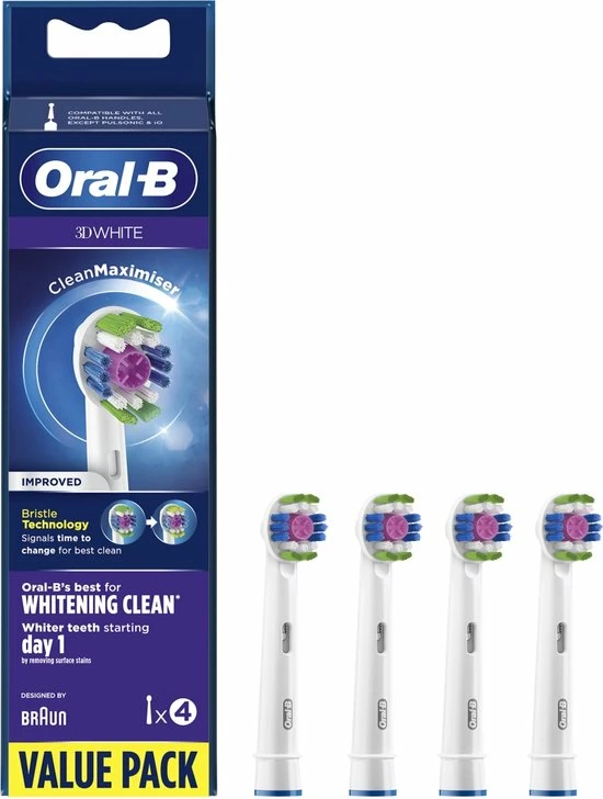 Oral B Oral-B 3D White – Met CleanMaximiser-technologie – Opzetborstels – 4 Stuks