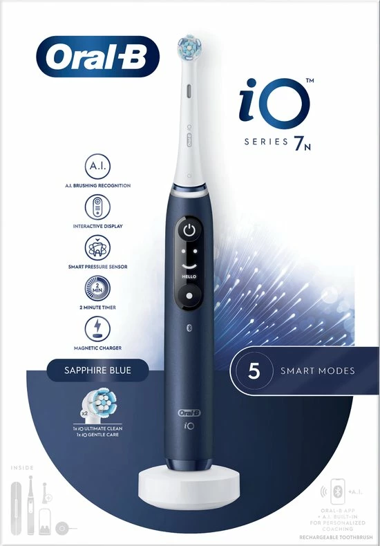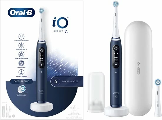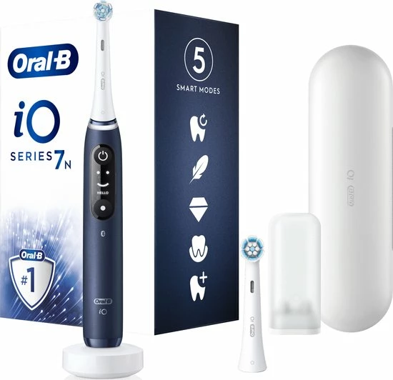 - Inhoud: 1 iO7-handvat met 2 opzetborstels, 1 reisetui, 1 oplader, 1 opzetborstelhouder