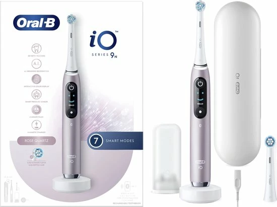 - Inhoud: 1 iO9-handvat met 2 opzetborstels, 1 oplaadreisetui, 1 oplader, 1 opzetborstelhouder
