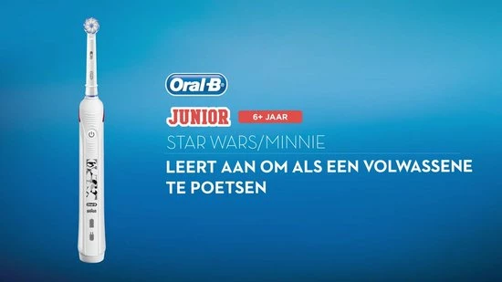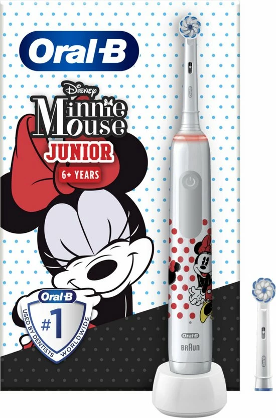 De Oral-B Junior Minnie elektrische tandenborstel voor kinderen vanaf 6 jaar is in samenwerking met tandartsen ontworpen voor een superieure reiniging. Hij heeft een 360° poetsdrukcontrole op het tandvlees die een rood lampje laat knipperen en de poetssnelheid verlaagt als hij detecteert dat er te hard gepoetst wordt. Bovendien heeft de ronde opzetborstel extra zachte borstelharen. Om het poetsen nog leuker te maken, kan hij worden gebruikt met de gratis Disney Magic Timer-app van Oral-B. 90% van de kinderen poetst langer bij gebruik van de app. Dit is dé borstel om kinderen te leren zelfstandig te poetsen en een gezonde poetsgewoonte te ontwikkelen waar ze hun hele leven profijt van hebben.