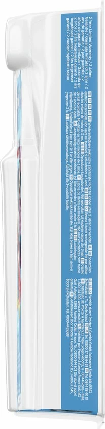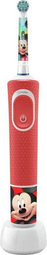 Met de Oral-B Kids elektrische tandenborstel voor kinderen vanaf 3 jaar kunnen kinderen plezier beleven aan Mickey én profiteren van de milde, effectieve reiniging van een door tandartsen aanbevolen tandenborstel Oral-B. Met een unieke, kindvriendelijke gevoelige modus reinigt deze borstel de tanden van kinderen voorzichtig. Hij verwijdert meer tandplak dan een gewone manuele tandenborstel. Er zitten vier leuke Mickey-stickers bij om het handvat mooier te maken.