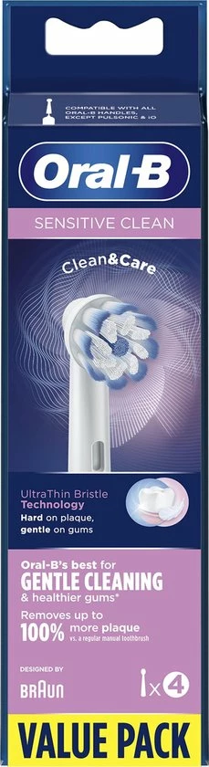 De Sensitive Clean opzetborstel is voorzien van ultradunne borstelharen die zacht zijn voor het tandvlees, gecombineerd met gewone borstelharen die tandplak grondig aanpakken.