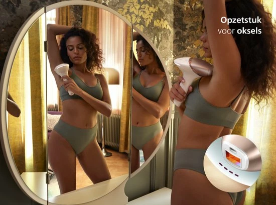 Speciaal ontworpen voor de behandeling van moeilijk te bereiken delen van jouw lichaam zoals de oksel. Het slimme opzetstuk voor de oksel is middelgroot met een venstergrootte van 3 cm2. Zodra het opzetstuk op het apparaat wordt geklikt, volgt een op maat gemaakt programma voor jouw oksel. 86% van de vrouwen is tevreden met de afname van de hoeveelheid okselhaar.