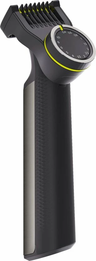 Trim jouw baard op een gelijkmatige lengte met de meegeleverde instelbare precisiekam. De 14 vergrendelbare lengtestanden bieden ontelbare mogelijkheden, van het trimmen van een ‘5 o’clock shadow’ en strakke lijnen tot een stijl met een langere baard. Trim jouw lichaamshaar in elke richting met de opklikbare lichaamskam (3 mm).