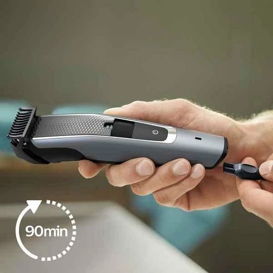 Laad jouw baardtrimmer 1 uur op voor maximaal 90 minuten snoerloos gebruik, of sluit hem gewoon aan op het stopcontact. Met de functie voor snel opladen heb je al een volledige trimbeurt na slechts 5 minuten opladen.