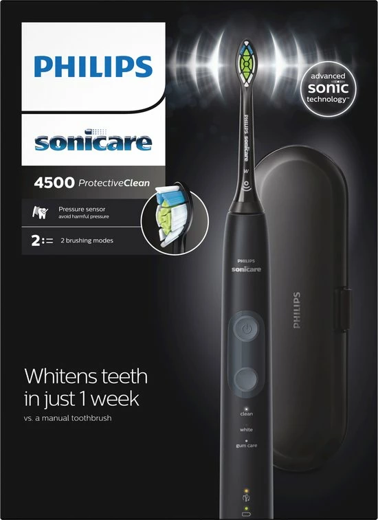 Voel het verschil van de zachte reiniging met onze poetsdruksensor terwijl jouw tanden witter worden in slechts 1 week. De Philips Sonicare ProtectiveClean 4500 series HX6830/53 – Elektrische tandenborstel laat je weten wanneer je te hard poetst en wanneer je jouw opzetborstel moet vervangen.