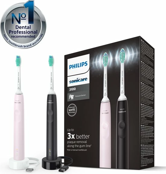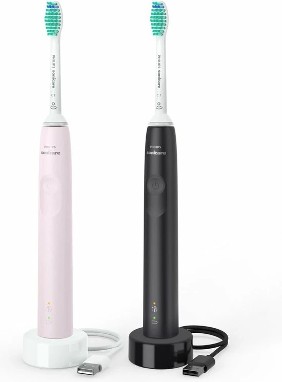 Philips Sonicare Series 3100 HX3675/15 – Elektrische Tandenborstel – Zwart & Roze – Duopack