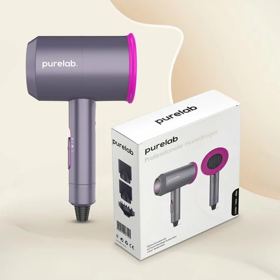 De Purelabhaarföhn maakt gebruik van ionentechnologie. Dat klinkt als hocus pocus, maar werkt echt. Een ionische föhn straalt namelijk negatieve ionen uit die ervoor zorgen dat de haarschubben sluiten tijdens het föhnen. Hierdoor wordt statisch en pluizig haar voorkomen, met als resultaat prachtig glanzende en zachte haarlokken.