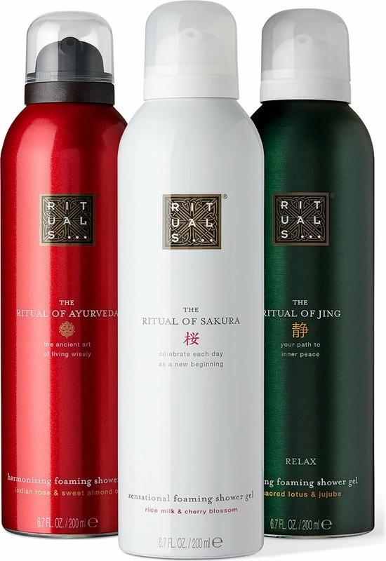 Schenk iemand deze gevarieerde gift set als kennismaking met de wonderlijke wereld van Rituals. Bevat drie full-size flacons doucheschuim van The Ritual of Sakura, The Ritual of Ayurveda en The Ritual of Jing. Met de delicate geur van kersenbloesem en de verzorgende rijstmelk voelt elke dag aan als een nieuw begin, reinig en voed je je energie met Indiase roos en zoete amandelolie en vul je elke dag met de rustgevende en kalmerende geuren van jujube en heilige lotus.