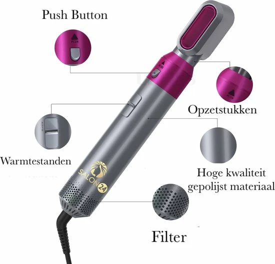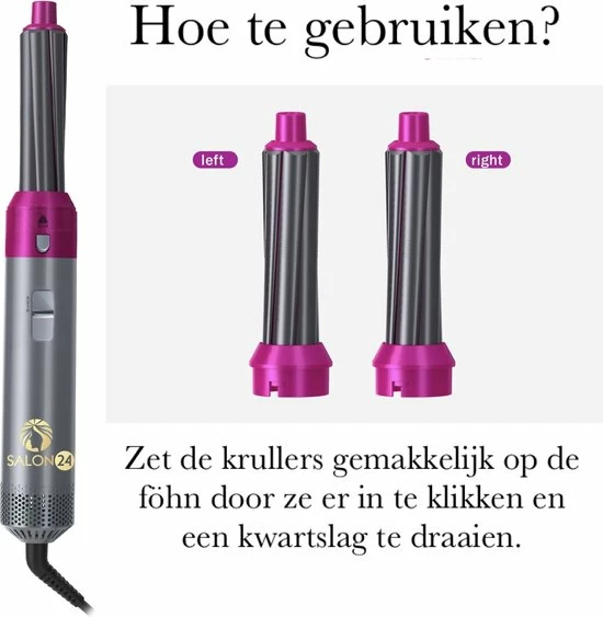 Heeft u vaker haast voor een feestje of dergelijke en wilt u uw haar nog snel kunnen stylen of heeft u geen zin om te wachten tot de krultang warm is dan is onze 5 in 1 multistyler de oplossing voor u. Onze alles in één multistyler zorgt er met verschillende hete luchtstanden voor dat u uw haar super gemakkelijk binnen een korte tijd in model kan brengen. Door de hete luchtstroming hoeft u niet te wachten en kunt u uw haar direct stylen. Nog nooit was het zo eenvoudig en gemakkelijk om u haren te stylen maar door onze multistyler is dit nu verleden tijd. Onze Salon 24 airwrap is zowel geschikt voor lang haar als kort haar. Zo kan iedereen gemakkelijk thuis in één handomdraai krullen, beach waves of juist glad geföhnt haar creëren.