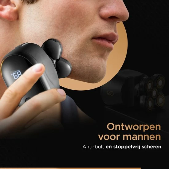 Wat ons scheerapparaat uniek en speciaal maakt is het design. Het scheerapparaat is zo ontworpen dat die makkelijk in de hand ligt en je flexibel te werk gaat. De innovatieve ergonomische handgreep biedt een goede grip wat perfect in de hand ligt voor comfortabel en intuïtief scheren van uw hoofd en gezicht. Dankzij het unieke ontwerp komt het scheerapparaat gemakkelijk op alle moeilijk bereikbare plaatsen voor onberispelijke resultaten.